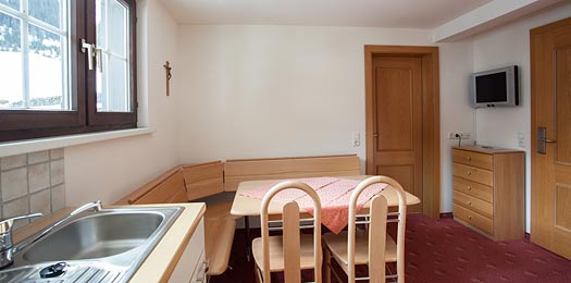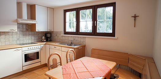 Als Ergänzung zu den Zimmern/Frühstück können Sie Ihre Auszeit in der Ferienwohnung genießen. Ca. 50 m² Wohnfläche mit einer offenen Küche, u.a. mit Geschirrspüler, Kaffeemaschine, Wasserkocher, Herd, Backofen und Sitzecke mit Tisch - machen Ihren Urlaub zur Erholung.